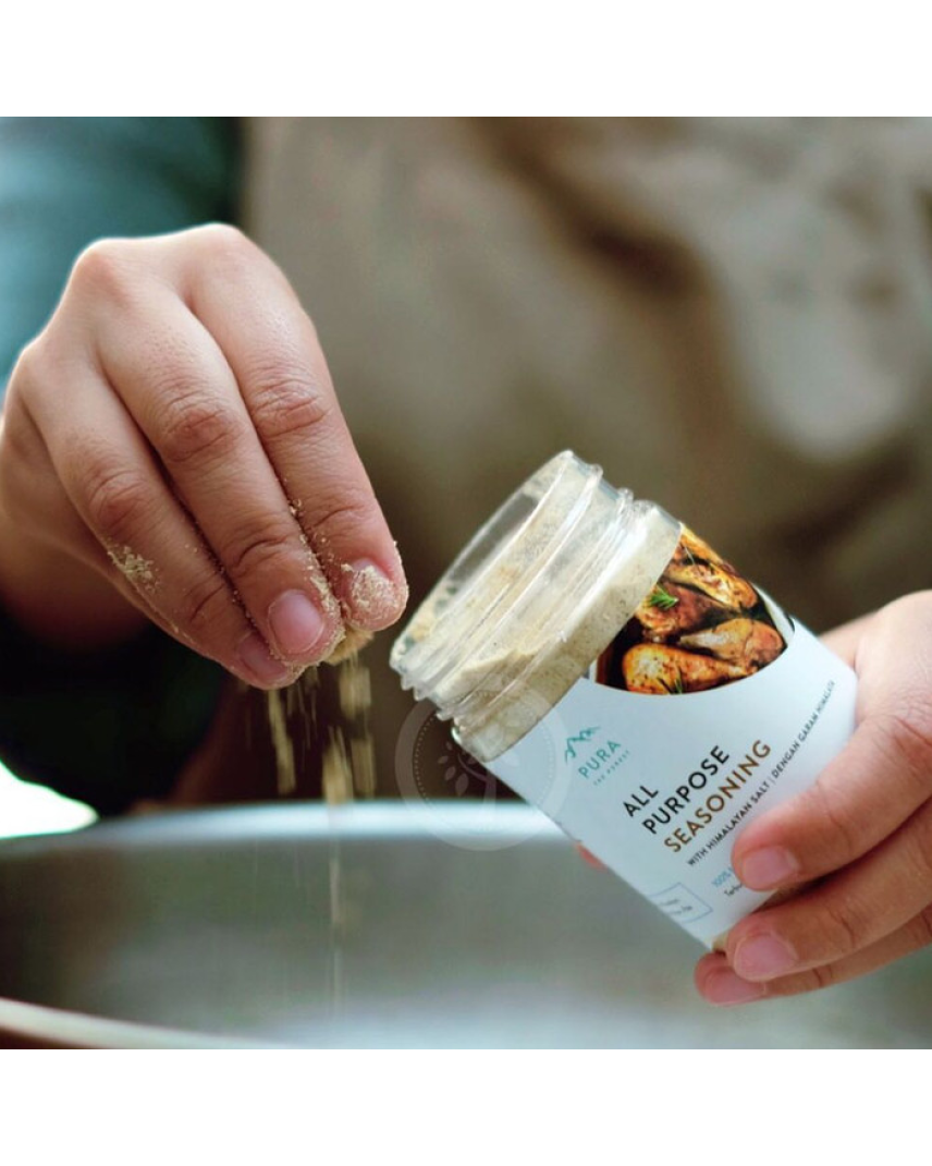 Pura seasoning merupakan bumbu natral pertama di Indonesia yang menggunakan Garam Himalayan, dengan kandungan 0 Gula, Non MSG, Tanpa Bahan Pengawet dan Bebas Gluten. Pura hanya menggunakan bahan pilihan terbaik, berkualitas, fresh, serta di proses secara modern dan higienis.