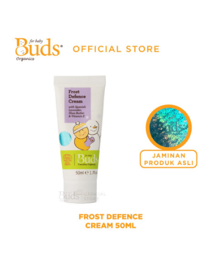 Buds Organics Frost Defense Cream merupakan krim yang berfungsi untuk menjaga kulit kering dan pecah-pecah akibat suhu dingin yang ekstrim pada negara-negara yang memiliki musim dingin (winter).
