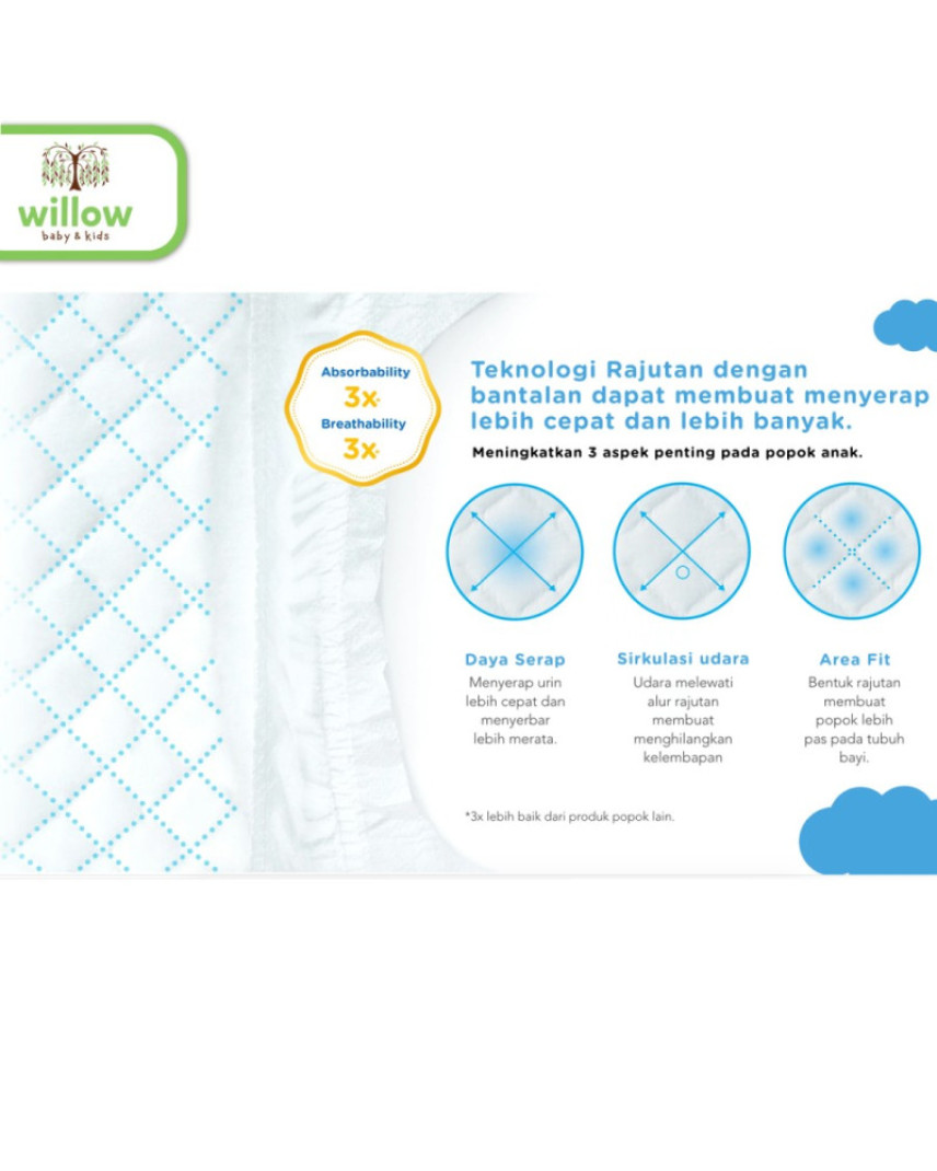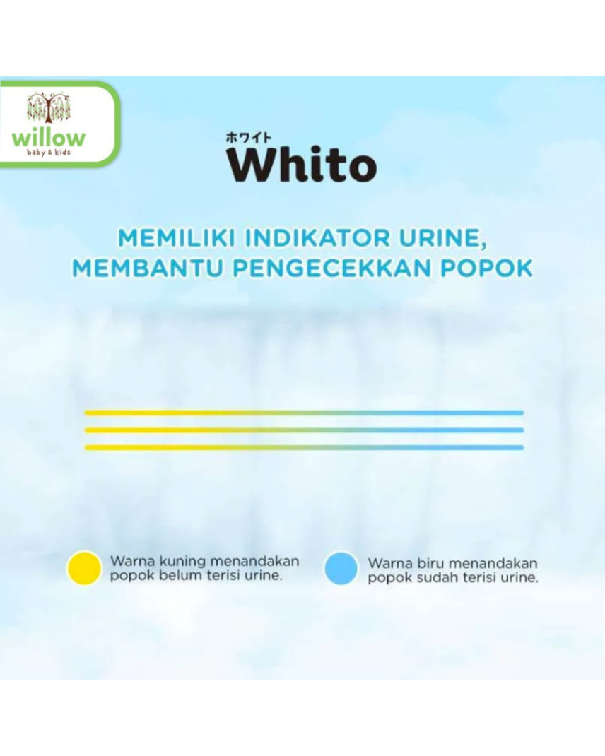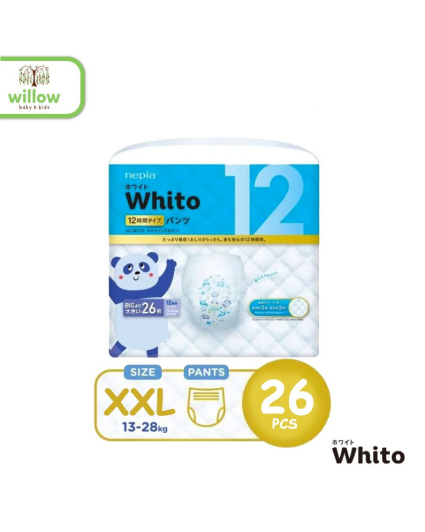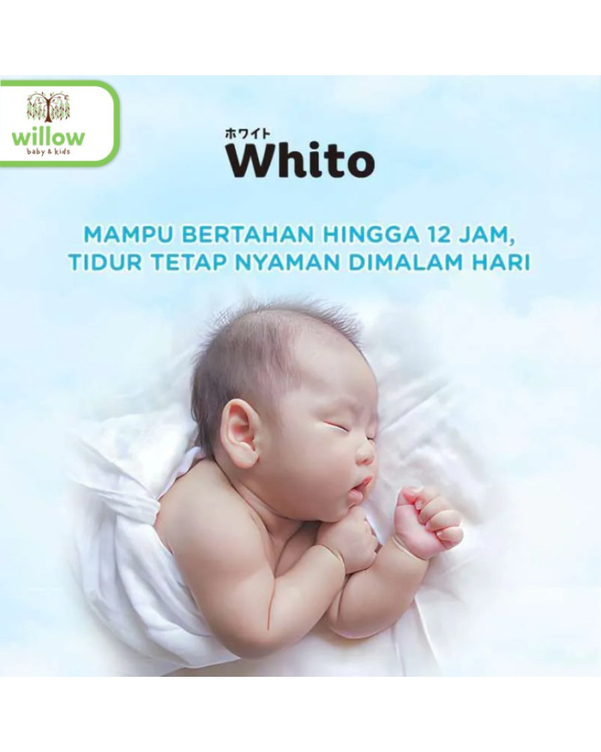 Nepia Whito adalah premium diapers dengan teknologi rajutan pertama. Teknologi rajutan ini dapat meningkatkan penyerapan air & sirkulasi udara 3x lebih baik dibandingkan popok lain yang tidak menggunakan teknologi rajutan. Nepia Whito juga dapat digunakan hingga 12 jam (jika bayi tidak buang air besar).