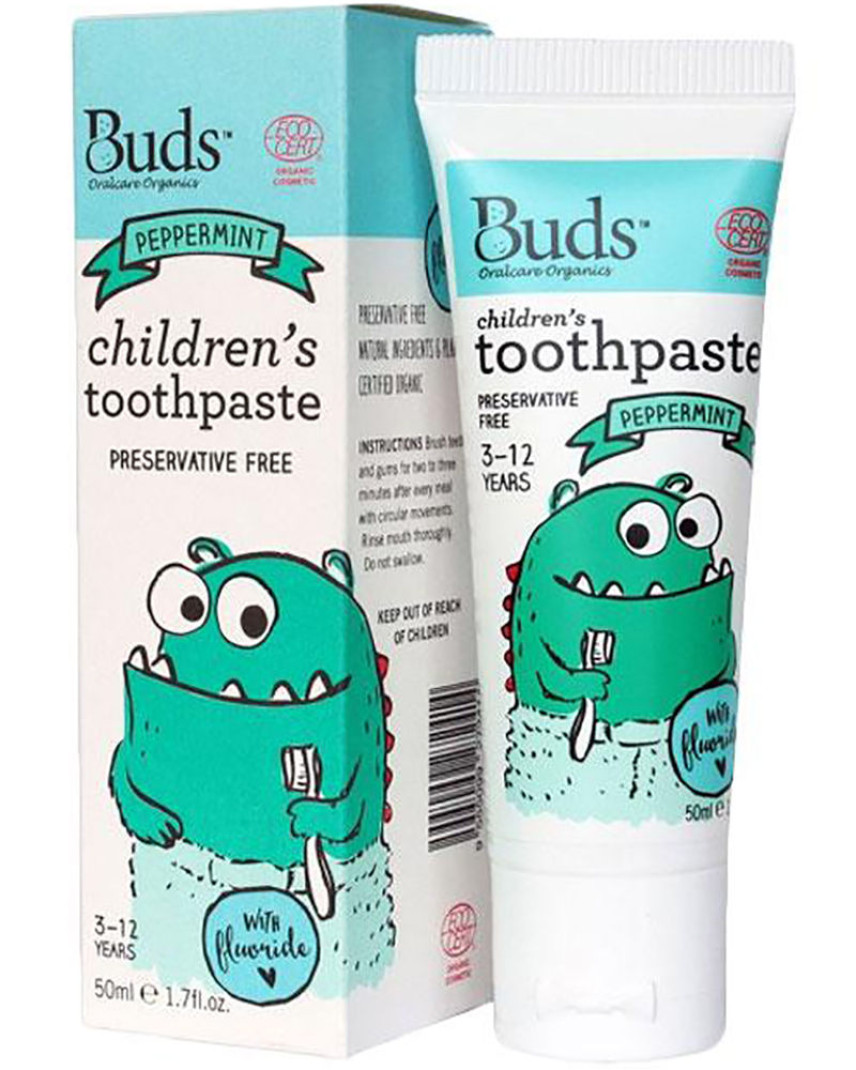 BUDS ORGANICS CHILDREN TOOTHPASTE 3-12Y PEPPERMINT 50ML