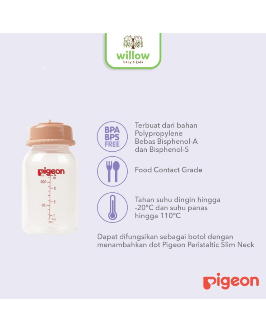 - dapat digunakan sebagai botol susu dengan menambahkan dot pigeon Peristaltic Slim Neck