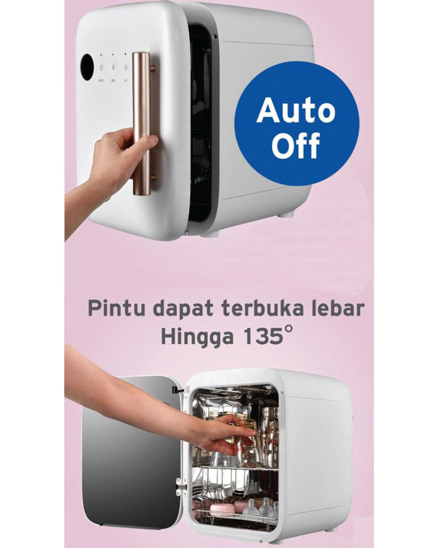 Spectra UV Electric Sterilizer - Classy White adalah alat untuk mensterilkan botol susu dan perlengkapan bayi lainnya, Spectra UV Electric Sterilizer telah menggunakan 2 unit Lampu UV Osram buatan Italia sehingga mampu membunuh kuman hingga 99.9%. Hadir dengan desain yang simple dan elegan yang semakin mempercantik rumah anda. Memiliki 4 tombol touch screen. Handle yang mudah dipegang dan permukaan UV Sterilizer yang mudah dibersihkan Menggunakan 2 unit Lampu UV Osram buatan Italia. Mampu membunuh kuman hingga 99.9% Bagian pintu yang bisa dibuka lebar hingga 135° sehingga mempermudah saat mengisi barang-barang untuk keperluan steril Didesign sedemikian rupa dengan Lekukan tanpa siku pada permukaan stainless steel Spectra UV dapat merefleksikan sinar UV nyaris sempurna ke semua permukaan benda yang disterilisasi.