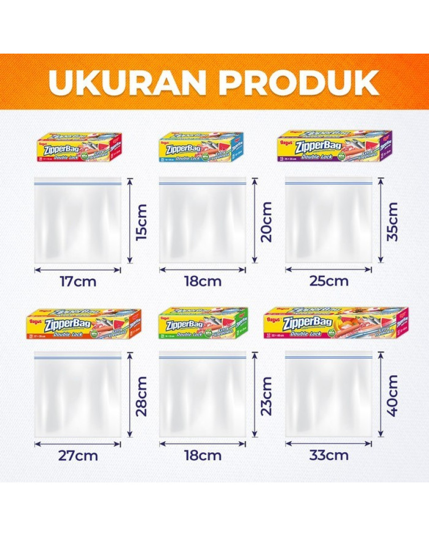 Bagus ZipperBag Double Lock merupakan kantong penyimpan makanan yang memiliki daya lekat kuat dengan bahan yang ramah lingkungan (food grade), sangat cocok digunakan untuk menyimpan makanan, buah atau sayuran.