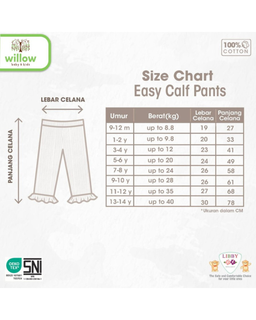 Libby mendesign produk celana bayi dan anak perempuan mulai dari usia 1 tahun sampai 10 tahun , yg nyaman dipakai pada saat bermain keluar atau bepergian karena designnya yg modis dan user friendly .