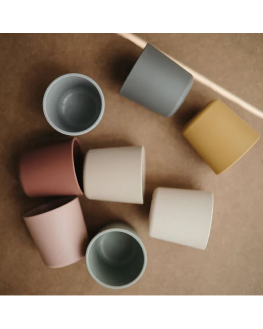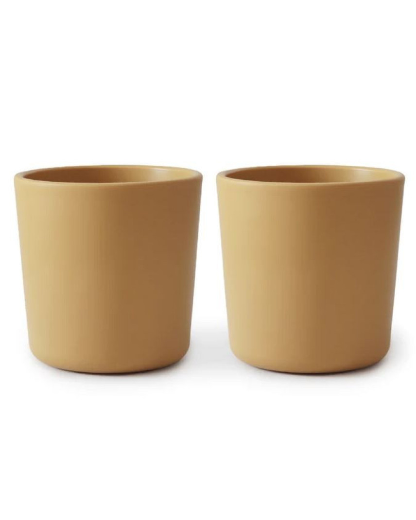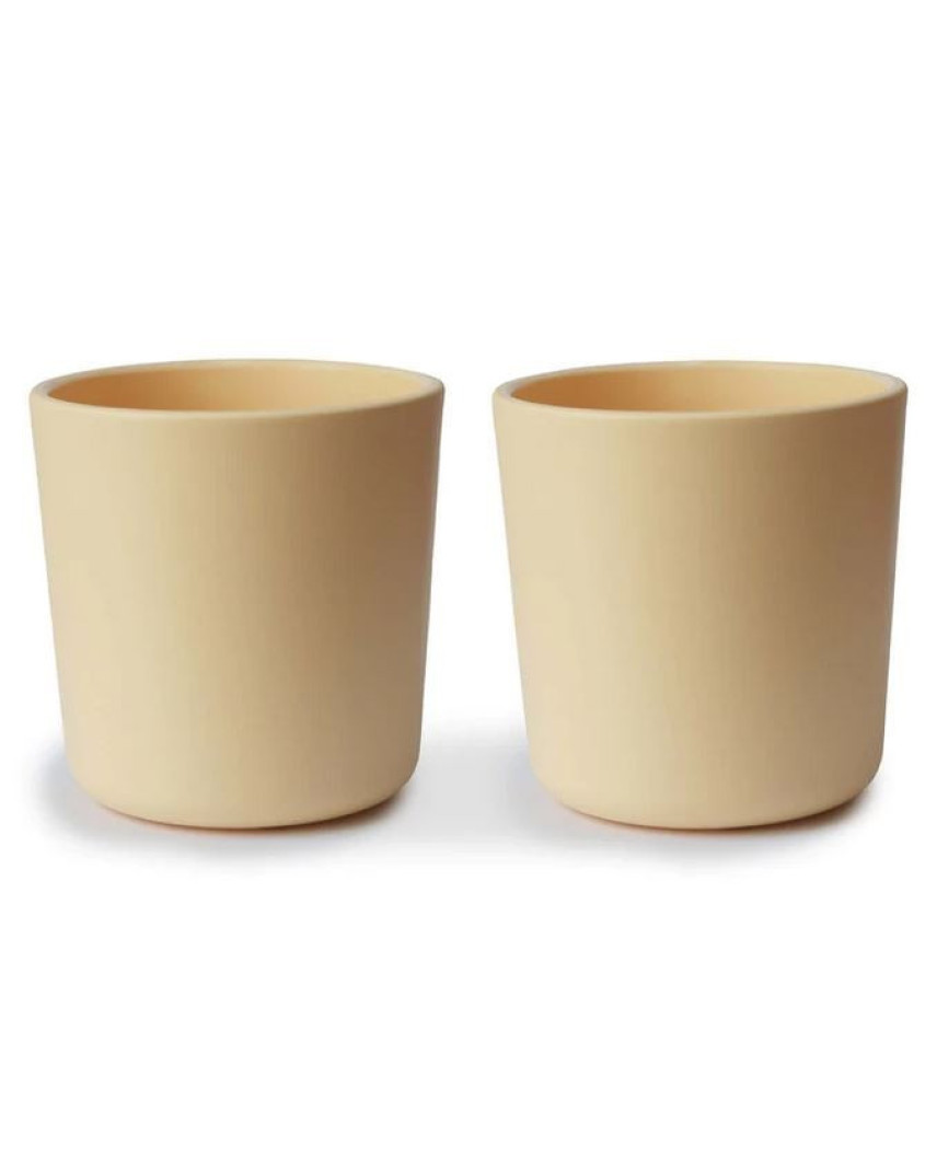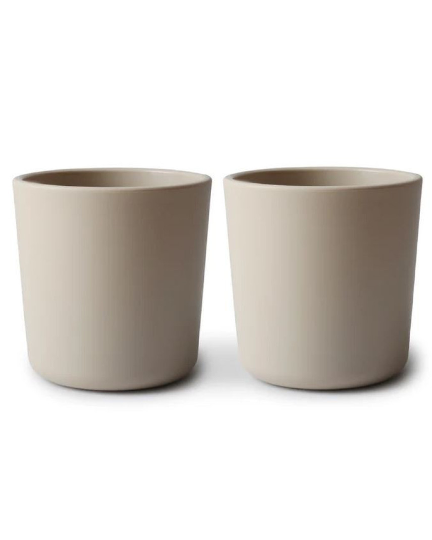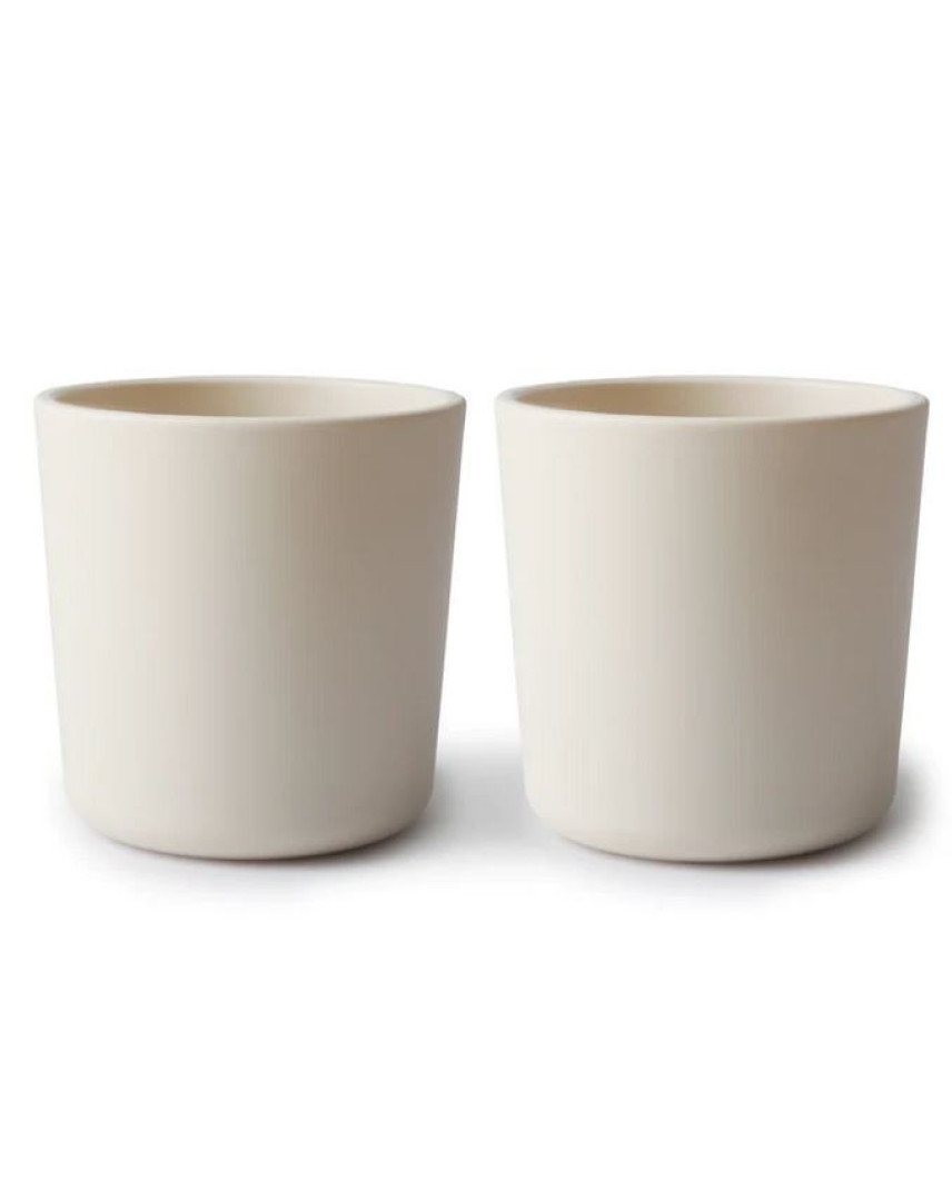 What #39;s Included: 1x set of 2 plastic dinnerware cups  With soft colors and clean design, this plastic dinnerware cup set is simple and elegant, and easy for your baby to hold.   Details   BPA-free polypropylene plastic  Measures 3 #34; tall  Capacity of one cup: 225 ml (7.6 fl oz) approx.  Dishwasher and microwave safe  Made in Denmark  Care  Dishwasher safe.