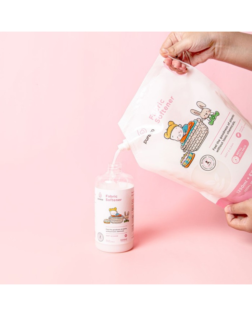 Pureco Fabric Softener merupakan pelembut pakaian berbahan dasar tanaman yang aman bagi keluarga anda.