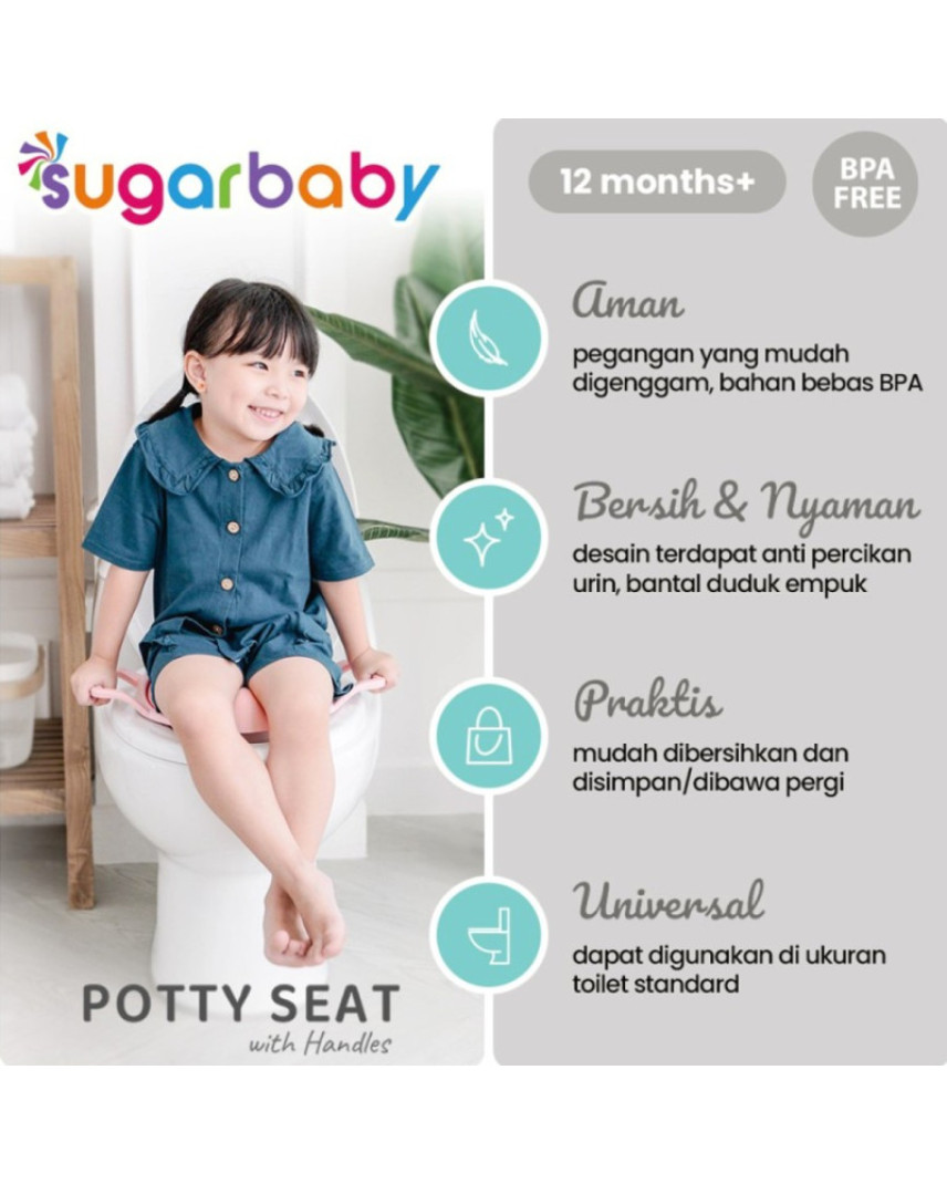 Sugarbaby kembali menghadirkan produk terbaru: Sugarbaby Potty Seat with Handles yang dirancang Ringan, berDesain Universal & Anti Splash, dengan Bantal Duduk lembut dan waterproof, dan Pegangan yang mudah digenggam untuk memberikan kegiatan belajar #toilettraining yang praktis dan nyaman buat si Kecil.